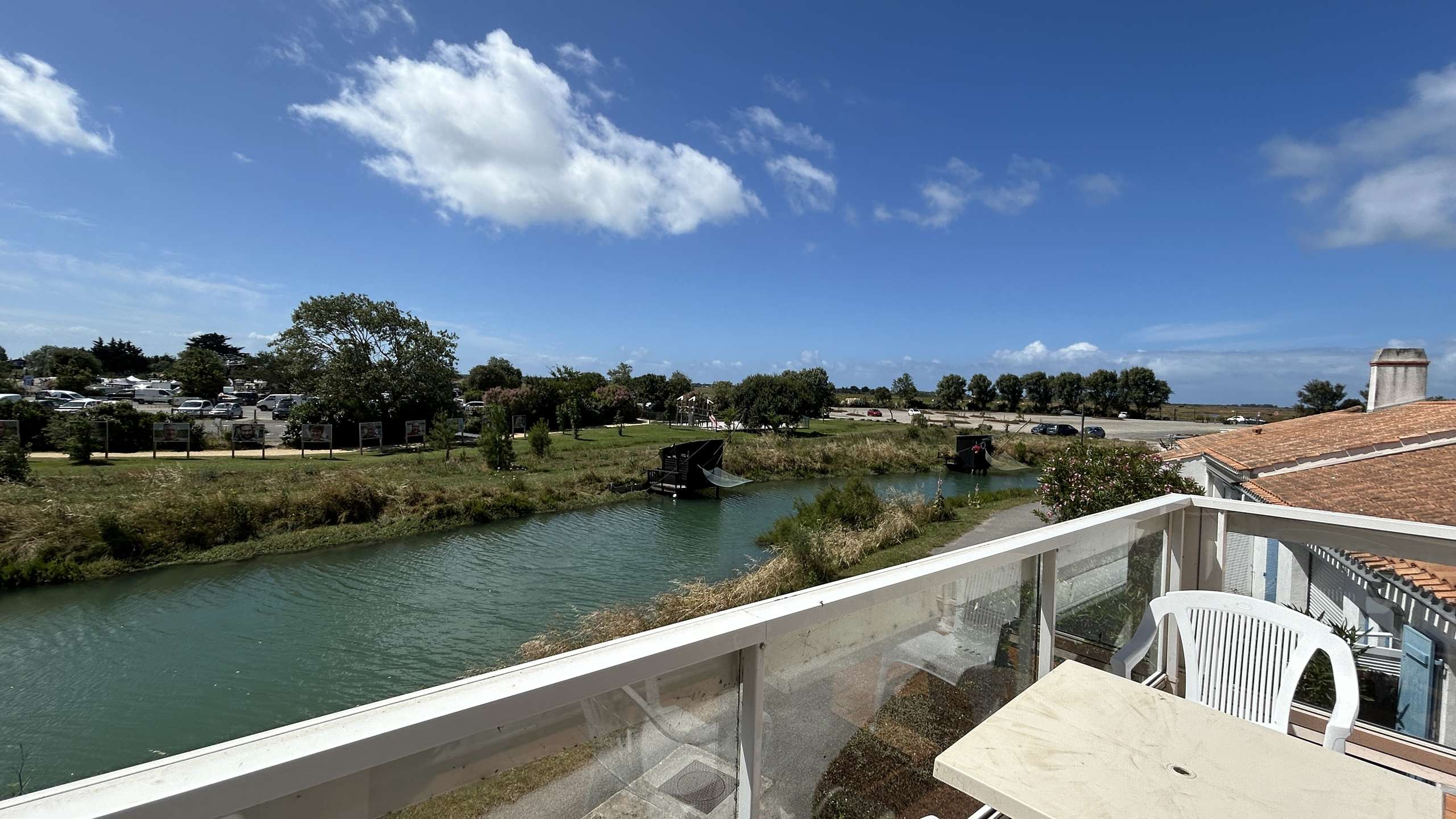 Located on the 1st floor in a private residence in the city center of Noirmoutier and 10 minutes from the beaches, this very beautiful apartment with balcony overlooking the etier includes a living room with fitted and equipped kitchen area, a living area and a lounge area with a sofa bed for 2 people with television, a bathroom with toilet and storage, a separate bedroom with 140 bed and cupboard. PETS AND SMOKERS NOT ALLOWED