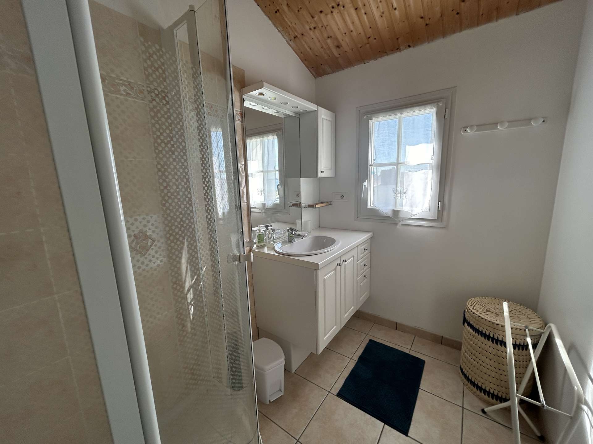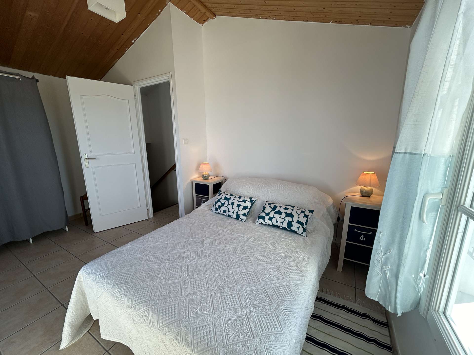 Located opposite the Lutins beach at Herbaudière, this beautiful house with sea view consists on the ground floor of a living room with television, independent kitchen, a bedroom with 140 bed and another bedroom with 2 90 beds, a bathroom and a separate toilet also a storeroom, upstairs 2 other bedrooms with 140 beds, bathroom and WC. 2 booster seats and a child safety gate for the stairs.
